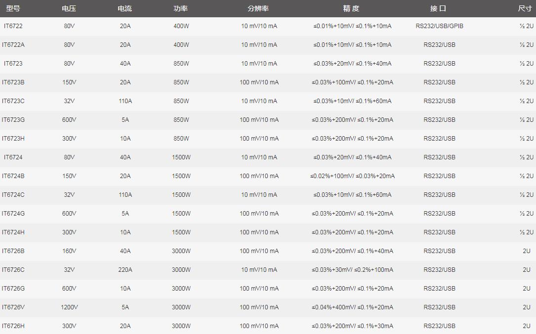 IT6700H系列選型參數(shù)表