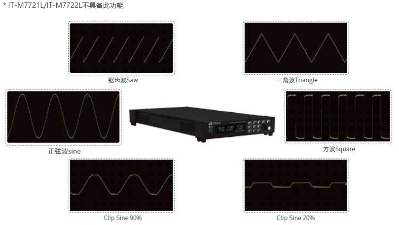 IT-M7700系列內置方形、鋸齒形、三角形等多種用戶自定義波形、多達30種內置的畸變波形,供用戶編輯、調取,可作為基礎波形,亦在list編程時進行調取。
