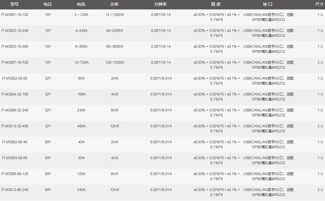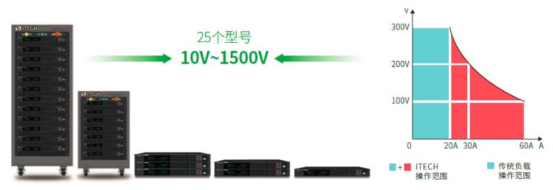 IT-M3800全系列共有25個型號,單機電壓從10V到1500V,單機電流最大可達720A。采用寬范圍的輸出設計,相較于傳統固定范圍輸出直流負載,為用戶提供了更多的電壓和電流組合,讓使用更加靈活。單臺負載就可以涵蓋用戶廣闊范圍的應用需求,大幅降低系統搭建的復雜度及占用空間。