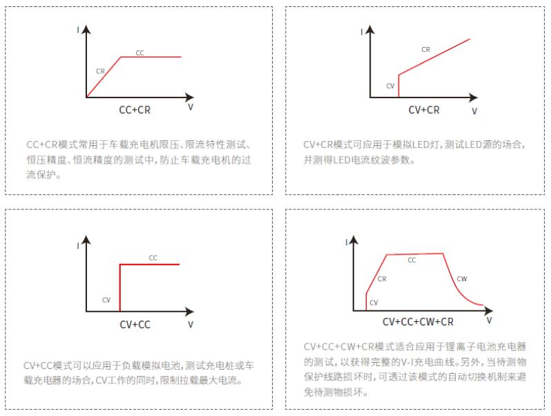 IT-M3800具備CC+CR、CV+CR、CV+CC和CC+CV+CW+CR等4種復合式操作模式,可適應于多種場合的測試需求。