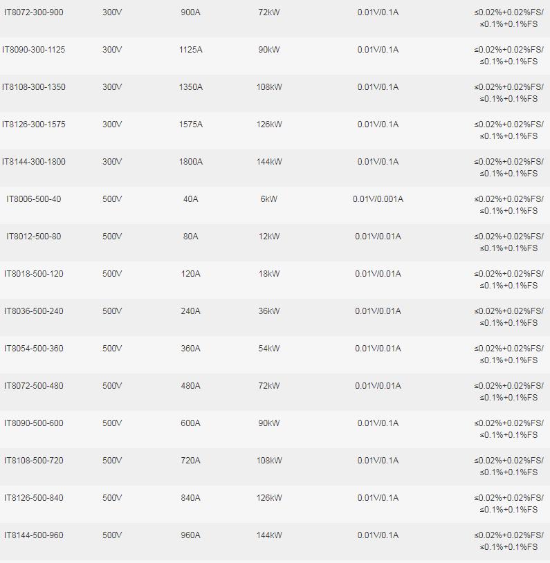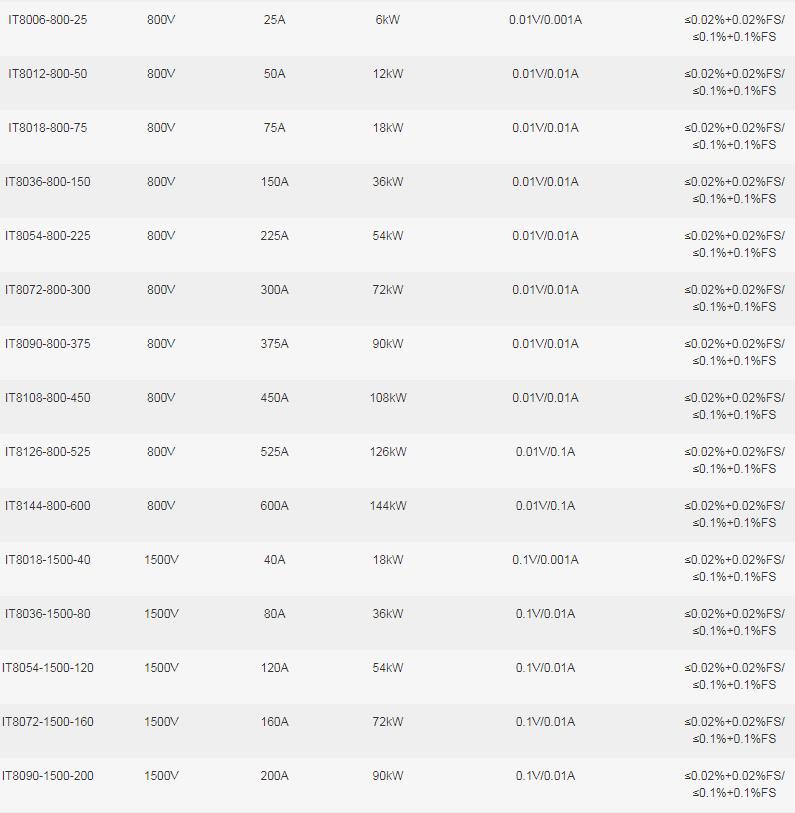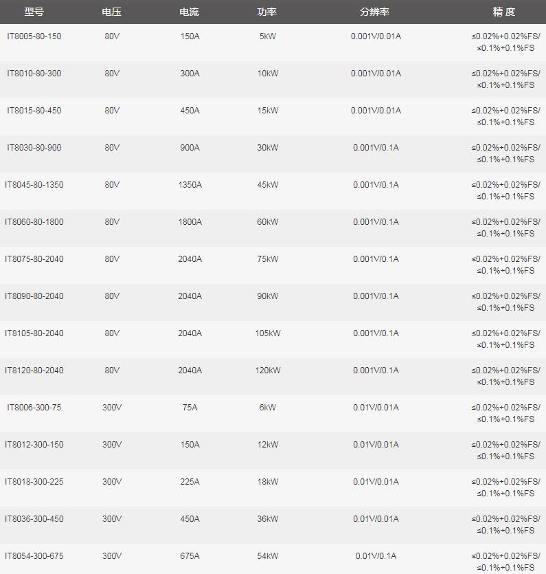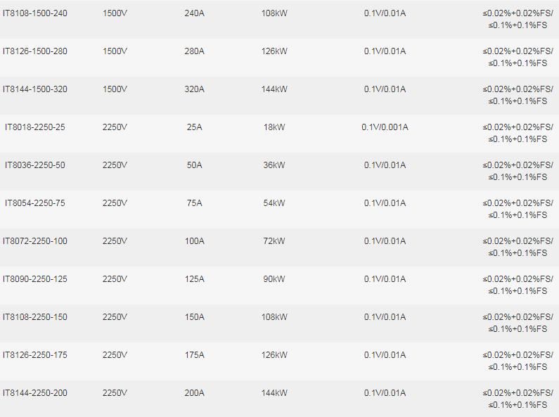 IT8000系列選型參數表