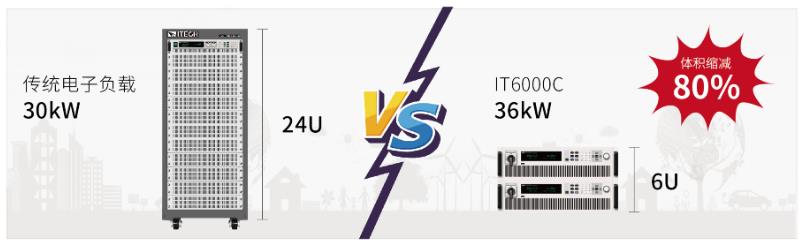 普通的能耗性電子負載不僅耗能耗電,本身的體積和重量也非常大。30kW的能耗型負載體積至少要24U,不但搬運困難,成本較高。IT8000系列能量回饋式直流電子負載采用高功率密度設計,3U體積內可提供高達18kW的功率吸收。同樣的輸出功率,體積減少了80%。
