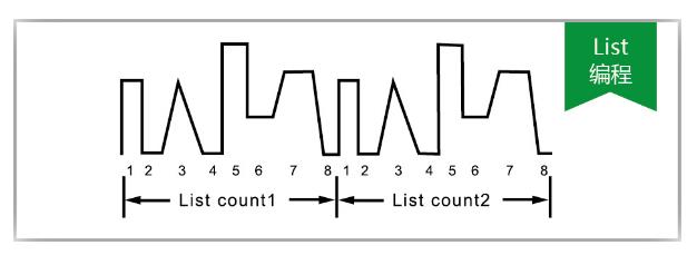 IT8000系列的List模式可以準確高速的完成復雜的任意電流變化模式,并且與內部或者外部信號同步,完成多準位帶載的測試,幫客戶大大的節約成本。通過編輯每一步的步值、脈寬和斜率,可以生成多種復雜序列,讓用戶完成各種帶載波形的測試。并且在CC模式下,IT8000系列可設定上升、下降沿速度。