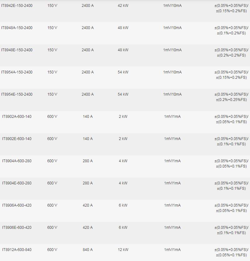 IT8900A/E 系列具有較寬的電壓、電流輸入范圍,覆蓋了已有的多種機型,滿足高電流、低電壓或高電壓、低電流的多種需求。