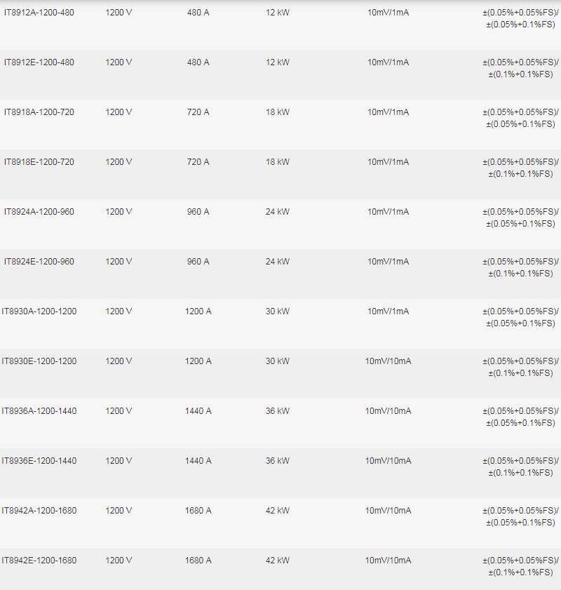IT8900A/E系列高功率密度大功率直流電子負載,具有150V、600V、1200V三種電壓范圍,單機功率從2kW到 54kW。較寬的電壓電流范圍,單機柜電流可達2400A。通過主從并聯(lián),功率可擴展到600kW。高功率密度,6kW僅4u高度。多達8種工作模式,具有較快的環(huán)路響應(yīng)和電流上升、下降速度,另有動態(tài)模式、OCP、OPP測試、自動測試及電池測試功能。內(nèi)置CAN、LAN、GPIB、USB、RS232和模擬量接口等,并具有多種保護功能,可應(yīng)用于動力電池的放電、直流充電樁、車載充電機(obc)、燃料電池堆、功率電子及其他電力電子產(chǎn)品的測試使用。