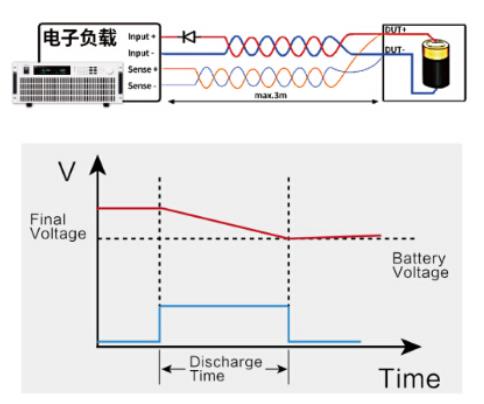 IT8900A / E 系列電子負載具有電池放電功能,可使用恒流、恒電阻或恒功率模式下進行放電測試。可自行設(shè)置放電截止條件:關(guān)斷電壓、關(guān)斷容量及放電時間,三者中任一種條件滿足,放電停止。測試過程中可觀測電池的電壓、時間和已放電容量。