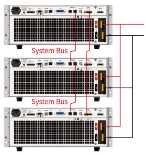 IT8900A/E 系列具有主從并聯(lián),主動均流的功能。支持不同功率、同電壓機柜的并機,并機后可以實現(xiàn)單機所有功能,包括CV模式下的工作,可以并聯(lián)到600 kW。單機柜亦可獨立工作,功率配置更靈活。此并機采用模擬量與數(shù)字量分別接線的方式,并機性能更穩(wěn)定。