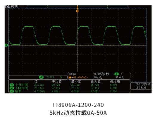 IT8900A系列電子負載(150V機型)具有高達30 kHz的動態(tài)模式*,一體化的內(nèi)部結(jié)構(gòu)的升級使得該系列的環(huán)路響應(yīng)和穩(wěn)定性得到大幅提高。可應(yīng)用于開關(guān)電源的瞬態(tài)響應(yīng)的測試,亦可以測試DC-DC轉(zhuǎn)換器和電池的瞬間大電流耐受性。
