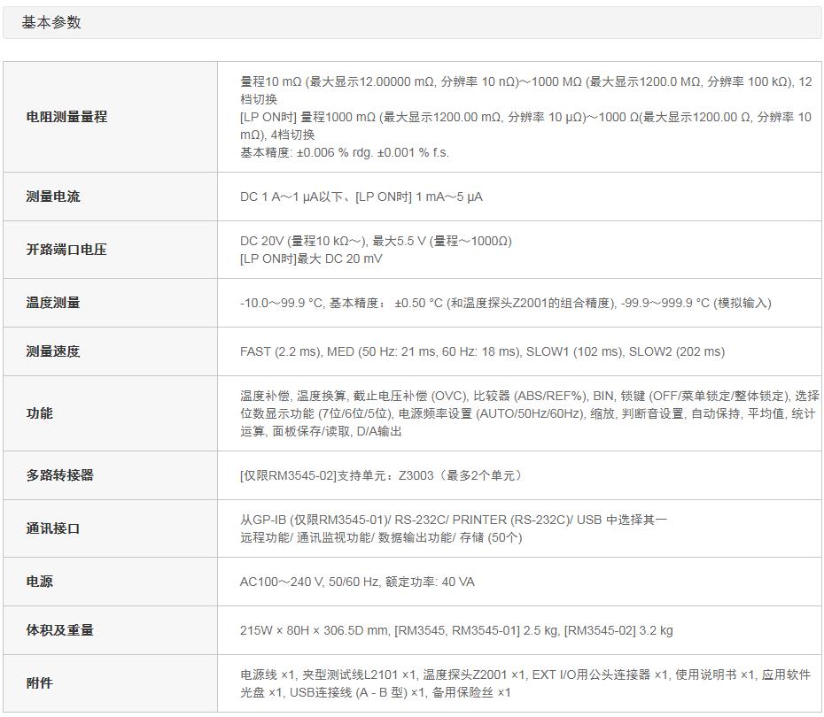 RM35456位半,1,200,000點(diǎn)顯示,最小分辨率可測量0.01μΩ 的電阻。在變頻器馬達(dá)的線圈檢查等需要高分辨率的電阻測量 等領(lǐng)域游刃有余。 在電子零部件方面,多用于導(dǎo)電薄膜/導(dǎo)電橡膠等高電阻材 料。RM3545可最大測量到1200MΩ。更值得一提的是,因?yàn)?具備了最高精度0.006%,即使檢查最高端的電流檢測電阻也 能使用。
