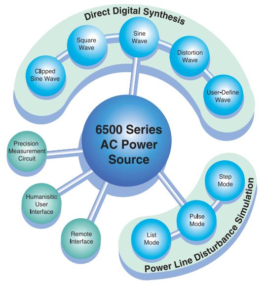 6530系列可編程交流電源供應器提供電力電子工程師進行模擬各種交流電源狀態、電源波形失真并進行電力特性之量測與分析。本產品提供了正確有效的測試方案去模擬各種正常或異常的電源現象,同時加以量測分析,為一整合性電源測試分析設備,充份適應于研發特性分析、生產測試、品保檢驗或自動化系統整合運用。