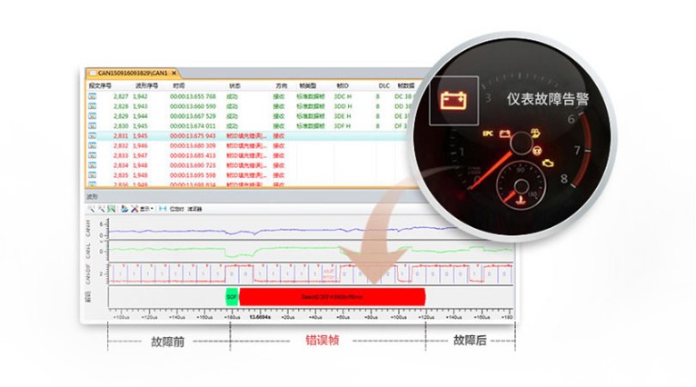 CAN總線故障排查中,難點最大的就是偶發性故障。讓用戶甚至CAN專家都無法準確判斷問題的源頭。比如,風力發電機變槳系統在72小時中發生一次CAN數據傳輸中斷;新能源車輛在行駛1萬公里過程中出現一次儀表盤“黑了”,但后來怎么都無法復現;高鐵列車在行駛2000公里中出現1次由于CAN通訊異常而導致的緊急減速等等。這些偶發性的CAN通訊異常就像定時炸彈,讓設計師和用戶膽戰心驚。