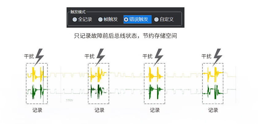 八個通道可以同時記錄報文,其中兩個通道可記錄波形。
