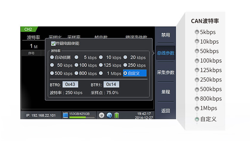 范圍在0Kbps~1.5Mbps之間。可使能或者禁止終端電阻。