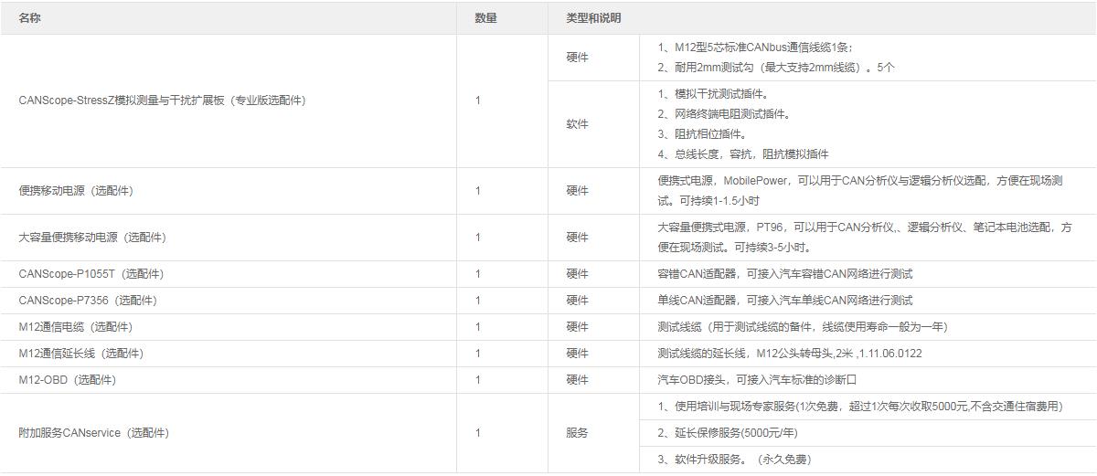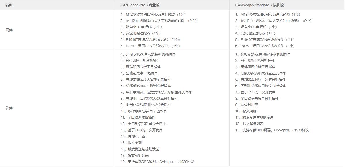 CAN系列總線分析儀選型參數表及配件