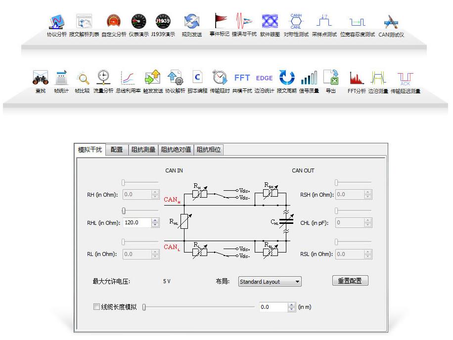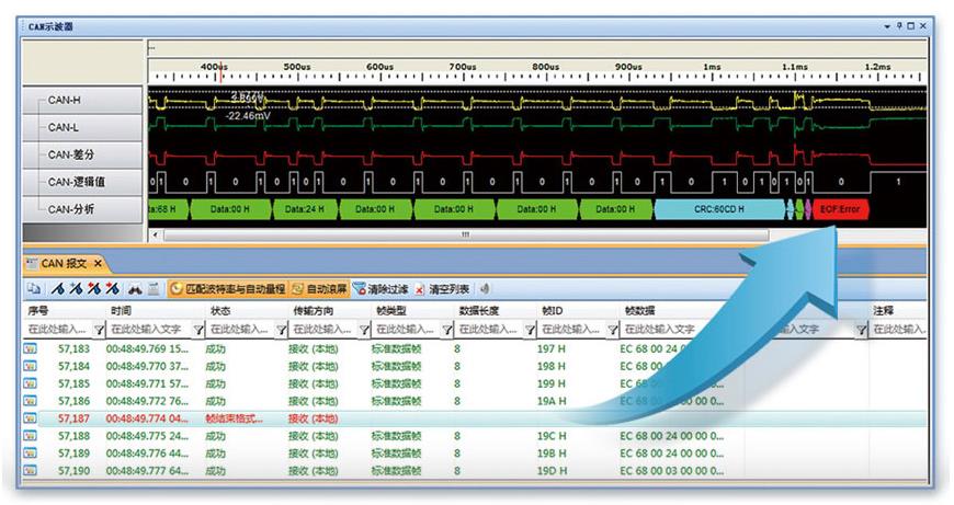 快速定位總線干擾頻率 實用的報文重播功能,精確重現總線錯誤 支持硬件眼圖;
