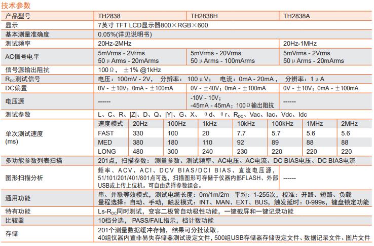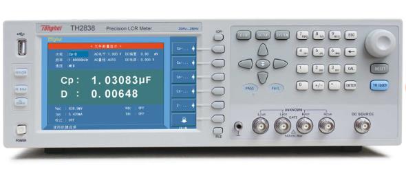 TH2838系列是采用當前國際先進的自動平衡電橋原理研制成功的新一代阻抗測試儀器,其0.05%的基本精度、最快達5.6ms的測試速度、20Hz-2MHz的頻率范圍及高達1GΩ的阻抗測試范圍可以滿足元件與材料的測量要求,特別有利于低損耗(D)電容器和高品質因數(Q)電感器的測量。四端對的端口配置方式可有效消除測試線電磁耦合的影響,將低阻抗測試能力的下限比常規五端配置的儀器向下擴展了十倍。