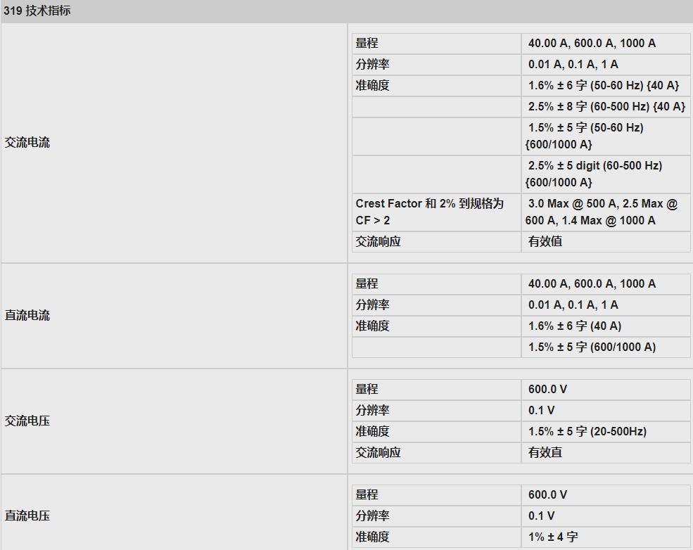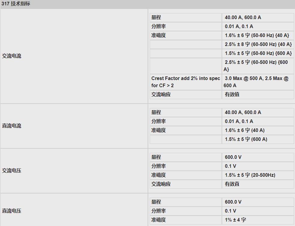 Fluke 317/319精度規(guī)格