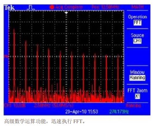 高級觸發功能可以幫助您迅速隔離關心的信號,包括上升沿 /下降沿觸發、脈寬觸發和視頻觸發。一旦捕獲了信號,高級數學運算功能和自動測量可以加快分析速度。您可以迅速執行FFT或對波形執行加法、減法或乘法運算。16種自動測量迅速可靠地計算重要的信號特點,如頻率或上升時間;內置極限測試功能則可以簡便地識別信號中的問題。