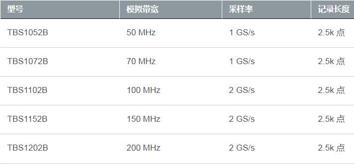 TBS1000B系列示波器選型參數表