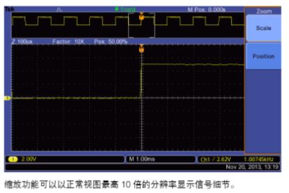 為正確分析信號,必需確保能夠足夠詳細地看到信號。 TBS1000B標配7英寸高清TFT顯示器,可以清楚地查看所有信號及關鍵屏幕信息。屢獲大獎的泰克MDO/DPO系列儀器開創的用戶界面,則進一步增強了這一儀器。用戶界面使用方便,可以快速進入所有示波器功能,包括高清"Pan& Zoom(卷動和縮放)功能,其分辨率最高可達正常分辨率的10倍,可以查看更多的信號細節。