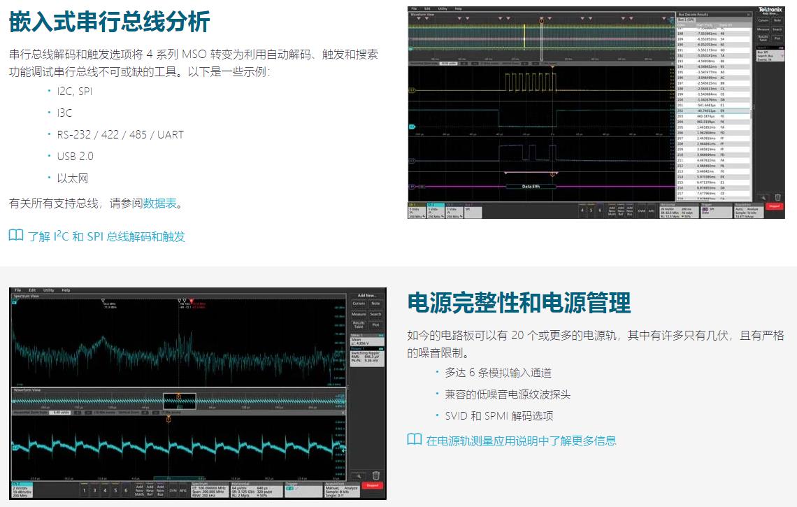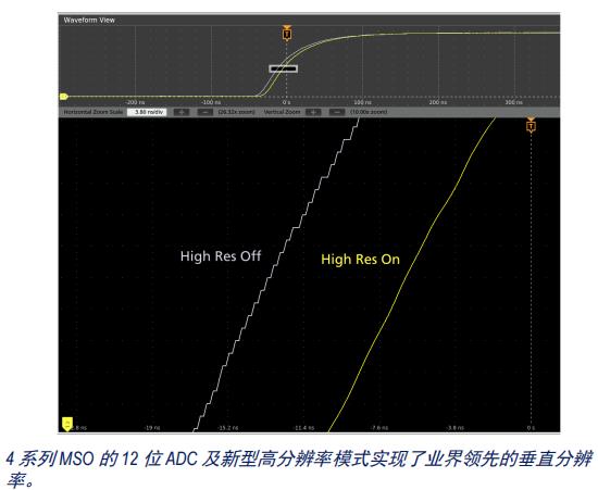 4 系列 MSO 提供了杰出的性能,可以捕獲關(guān)注的信號,同時在您需要捕獲高幅度信號,而又要查看更小的信號細節(jié)時,最大限度地降低了有害噪聲的影響。4 系列 MSO 的核心是12 位模數(shù)轉(zhuǎn)換器 (ADC),其提供的垂直分辨率是傳統(tǒng) 8 位,ADC 的 16 倍。全新高分辨率模式根據(jù)選擇的采樣率來應用基于硬件的獨特有限脈沖響應 (FIR) 濾波器。FIR 濾波器為該采樣率保持最大帶寬,同時在超過選定采樣率的可用帶寬時,防止假信號,消除示波器放大器和 ADC 中的噪聲。High Res 模式一直提供最低 12 位的垂直分辨率,一直擴展到 ≤125 MS/s 采樣率下的16 位垂直分辨率。噪聲更低的新型前端放大器進一步改善了 4 系列 MSO 解析精細信號細節(jié)的能力。