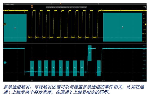找到復雜總線的適當周期可能要用幾個小時的時間,來收集和分類數(shù)千次采集,找到關(guān)心的事件。通過定義觸發(fā),隔離所需事件,可以加快調(diào)試和分析工作通過僅觸發(fā)最重要的信號事件,可視觸發(fā)能夠減少捕獲量以及手動搜索時的工作量,進而節(jié)約數(shù)小時時間。您可以在幾秒鐘或幾分鐘內(nèi),找到關(guān)鍵事件,完成調(diào)試和分析工作。可視觸發(fā)甚至可以用于多條通道,進一步用來調(diào)試和排除復雜的系統(tǒng)故障。