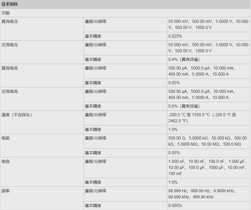4.5 位高分辨率,50,000計數,基本直流電壓準確度 0.025 %;
