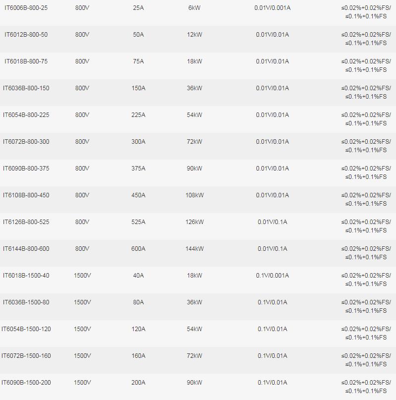 IT6000B系列將雙向電源和回饋負載集成到了僅3U體積的一臺儀器內。一個按鍵就可以讓它在雙向電源和回饋負載中間自由切換,不光可以作為一****立的雙向電源使用,實現source的功能,提供功率;也可以作為一****立的回饋負載使用,不但可以吸收功率還能將消耗的能量清潔的返回至電網,具有標準的雙象限功能。IT6000B系列可至2250V。利用主從模式支持并聯,主動均流,功率可擴展至1152kW。內置函數發生器,可以自由的產生任意波形,并通過USB接口導入LIST文件生成波形。IT6000B系列廣泛應用于大功率電池、汽車電子、綠色能源、高速測試等多個方面,是一款功能豐富、性能優異、適用廣泛的產品系列。