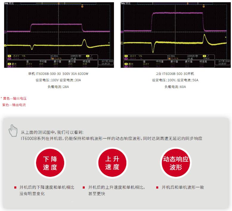 IT6000B系列延續ITECH提出的CC/CV 優先權概念,持續幫助用戶解決長期測試應用中的各種嚴苛問題,使需求電源高速或者無過沖等應用,變得更加靈活。用戶可以選擇CC/CV 環路的響應速度以及環路工作模式,來決定輸出是電壓高速模式還是電流無過沖模式,適用于諸如大功率集成電路的測試、充放電測試和汽車電子的電源瞬變仿真和表征等。