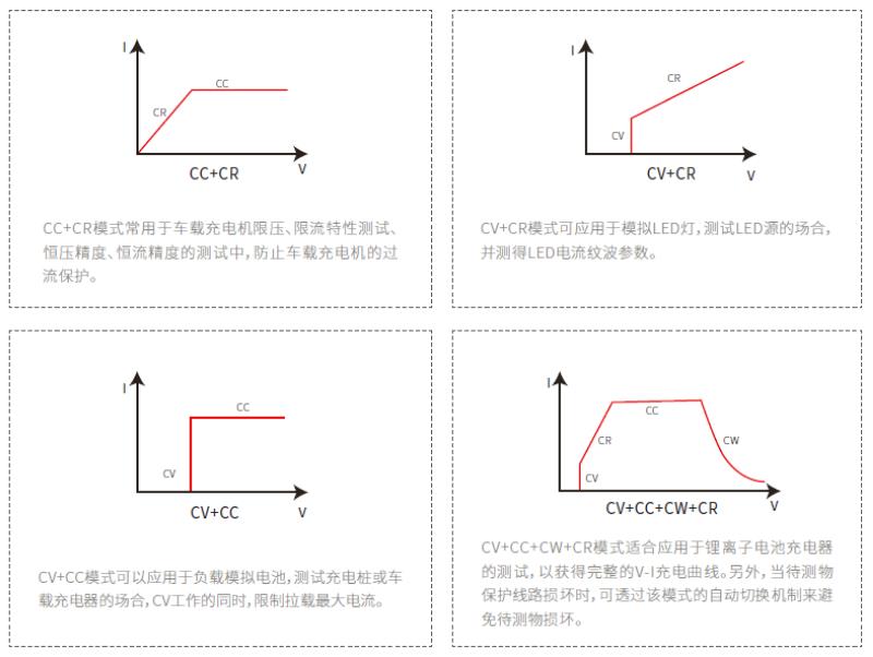IT-M3900B在負(fù)載功能下還具備CC+CR、CV+CR、CV+CC和CC+CV+CW+CR等4種復(fù)合式操作模式,可適應(yīng)于多種場(chǎng)合的測(cè)試需求。